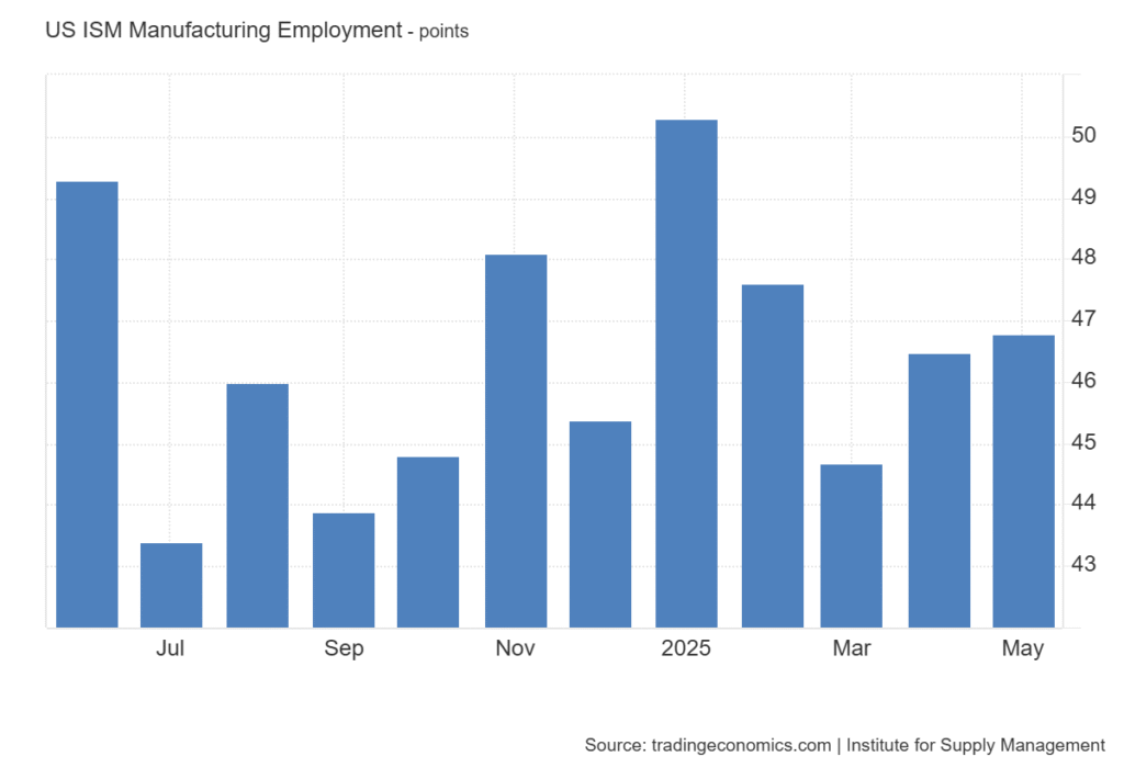 세번째로 고용입니다. 구매자관리지수의 고용 부분은 얼마나 고용을 하는 지를 나타내는 지표입니다. 밑에서 설명 드리겠지만, 50선을 상회할 경우 고용 구매자관리지수가 좋다고 해석 하고 그 반대일 경우 고용이 잘 안 된다 라고 판단합니다.